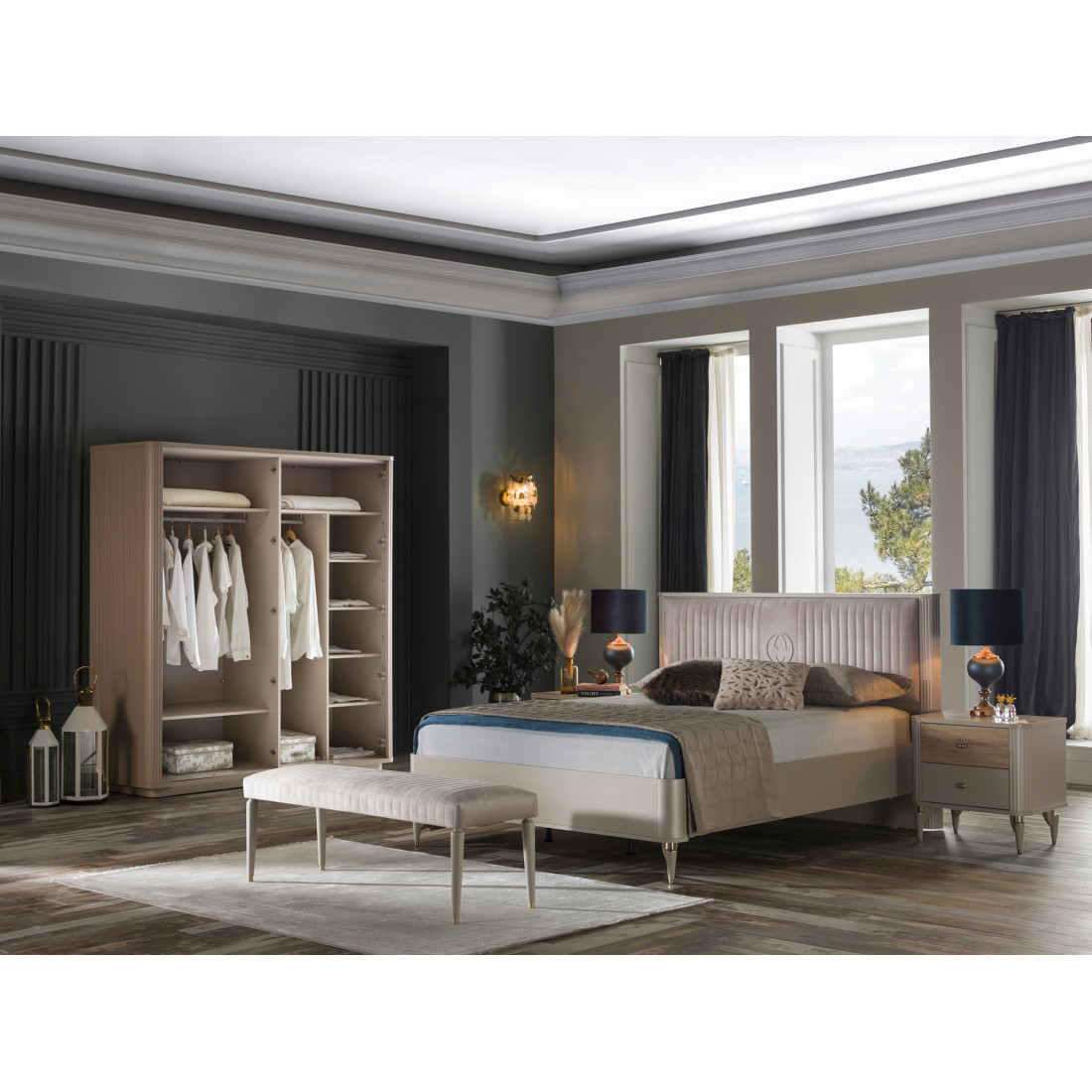 Четырехдверный шкаф Санвито SANV-20 один из  вариантов шкафов, представленных турецким брендом Bellona в коллекции SANVITO. Благодаря своей  длине 1810 мм, он отлично впишется в небольшую спальню. Наполнение же шкафа ,при глубине 660мм, позволит хранить все необходимые вещи для гардероба. В шкафу предусмотрены как полки для белья, так и штанги для вещей. Максимум хранения при минимальных габаритах. Отдельно стоит уделить внимание дизайну шкафчика. Первое, что обращает на себя внимание это округленная форма шкафа, отсутствиеострых углов. Шкафчик кажется обтекаемым со всех сторон. Вертикальные рифленые полосы на фасадах наоборот создают эффект увеличения высоты. .Центральные зеркальные фасады отлично комбинируются с теплыми кремовыми тонами боковых фасадов.