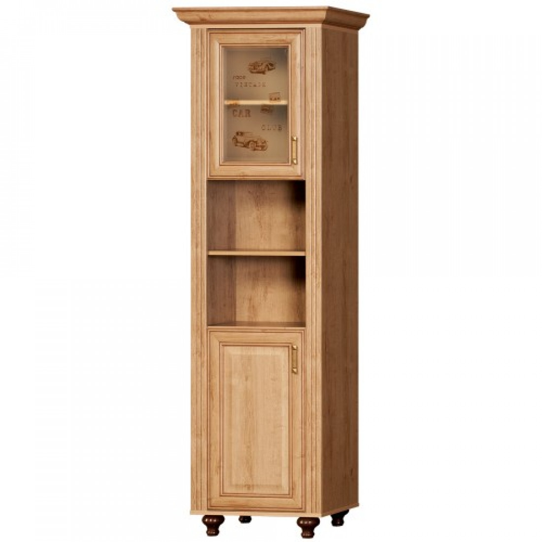 Фасады: МДФ, декор – дуб ридинг, рисунок, патина, стекло с фацетом и рисунком, зеркало