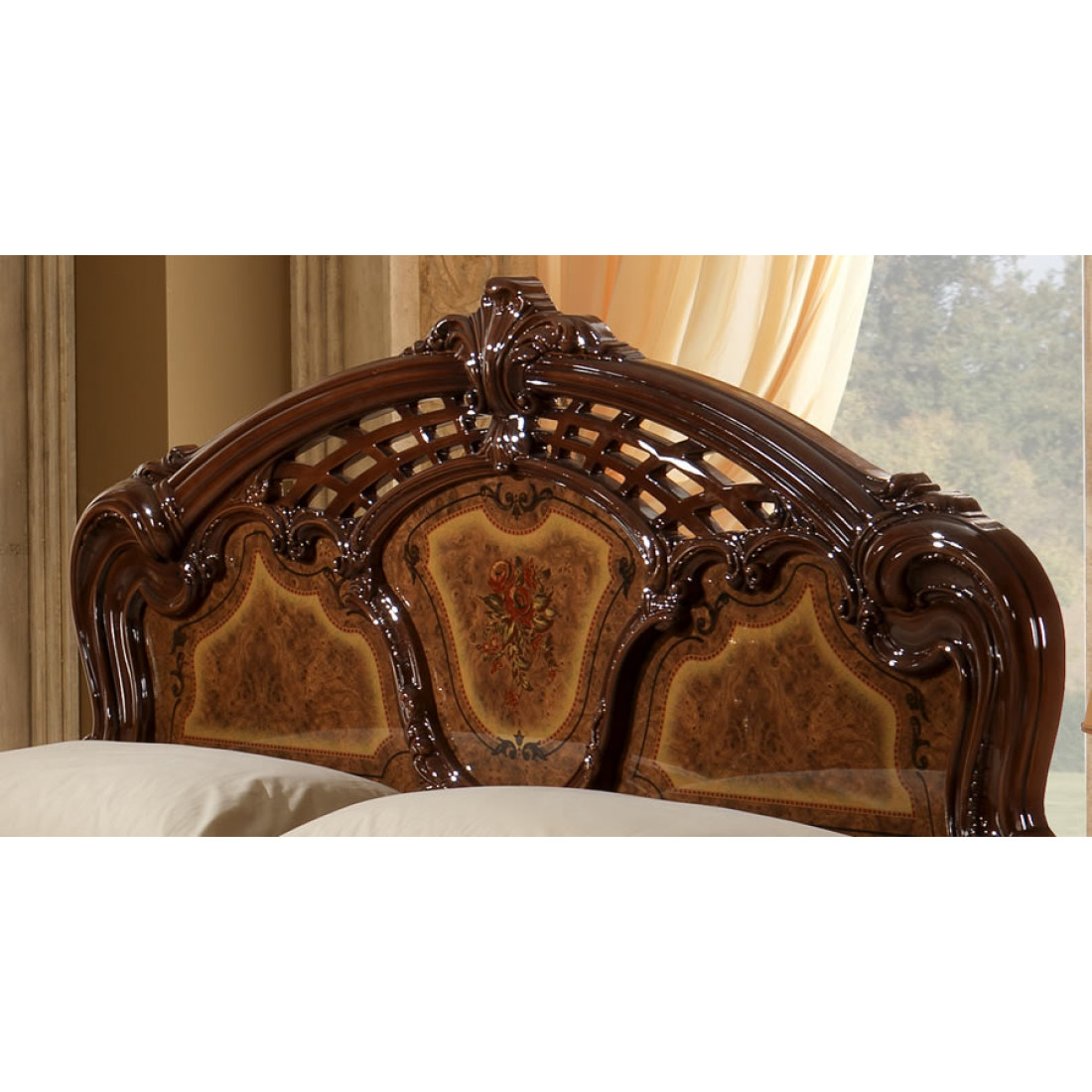 Двуспальная кровать Роза (орех) от Российской фабрики "ДИА мебель". Выполнена в элегантном классическом стиле. Такая большая и комфортная кровать с ортопедическим основанием, поможет Вам расслабиться и насладиться хорошим отдыхом после рабочего дня. Она выполнена в ореховом цвете с глянцевым покрытием, и золотистым орнаментом на фасадах. Обращает внимание на себя декоративная фрезеровка изголовья кровати. Такая модель кровати, с легкостью обратит внимание на прекрасное чувство стиля своего владельца.