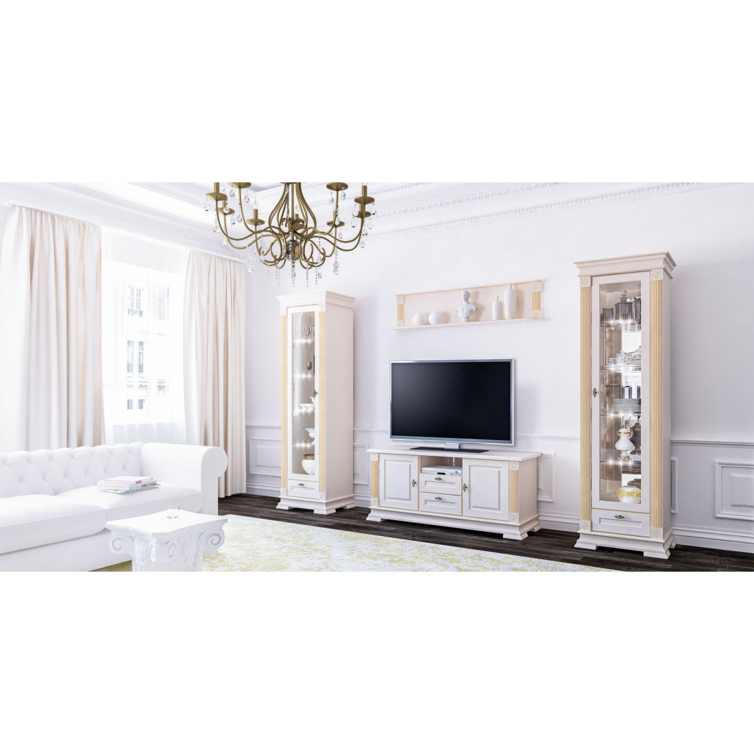 Витрины гостиной Афина послужат прекрасной основой, а тумба для телевизора и настенная полка, прекрасным дополнением комплекта.