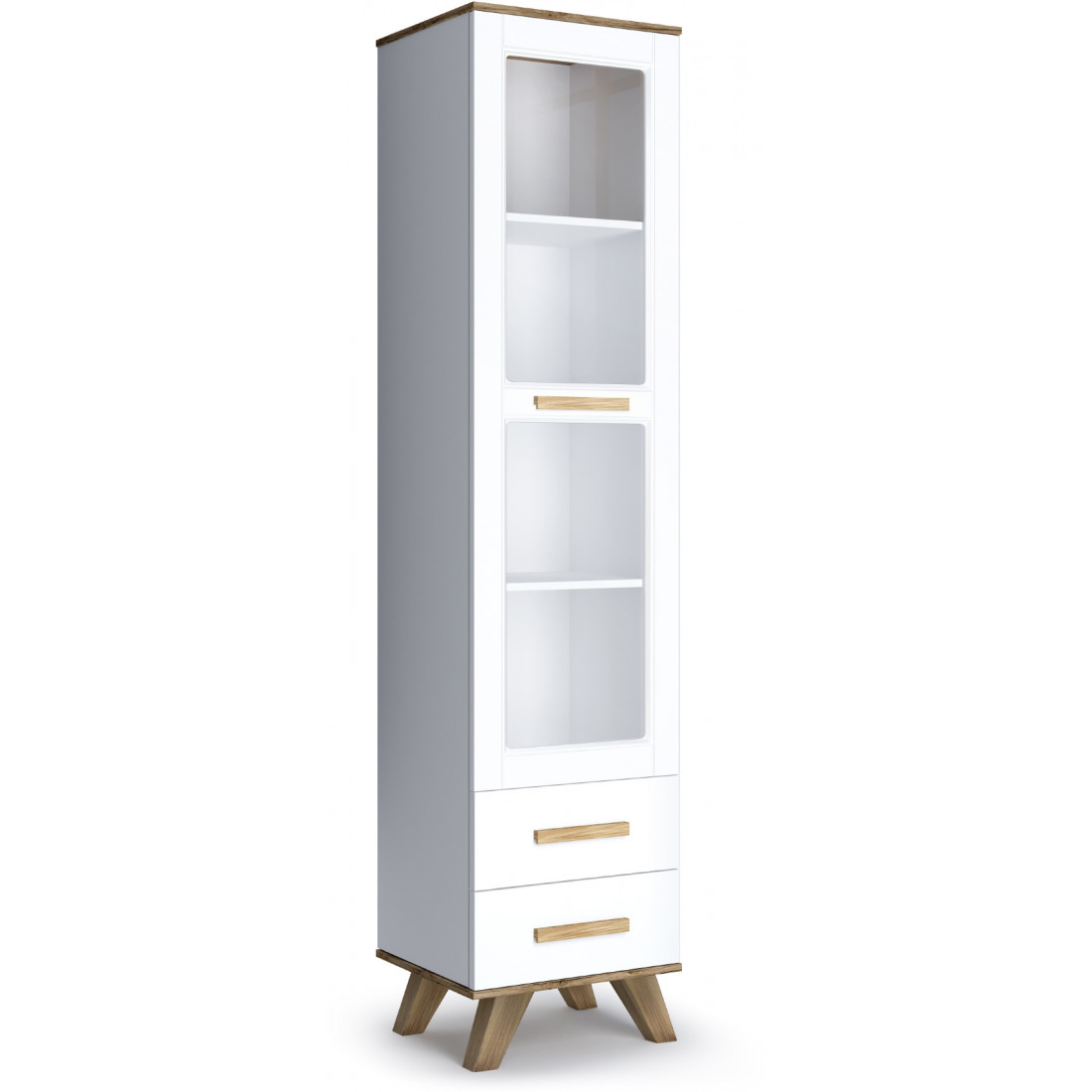 Шкаф-витрина 800 Вега Скандинавия (глянец, белый + дуб каньон)
