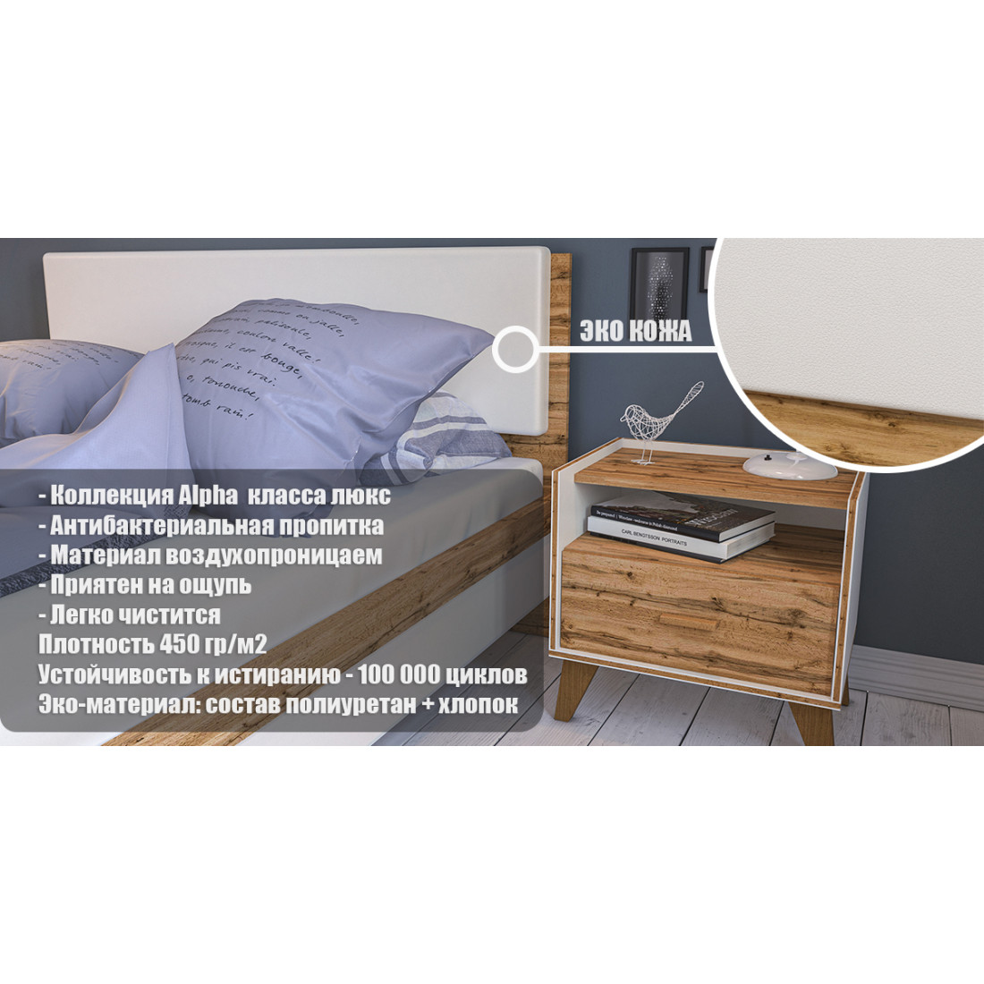• Цвет фасада - «белый, дуб вотан» – МДФ-16мм, спинка МДФ-54мм Kronospan Szczecinek (Польша) + ПВХ Alfaterm (Италия)