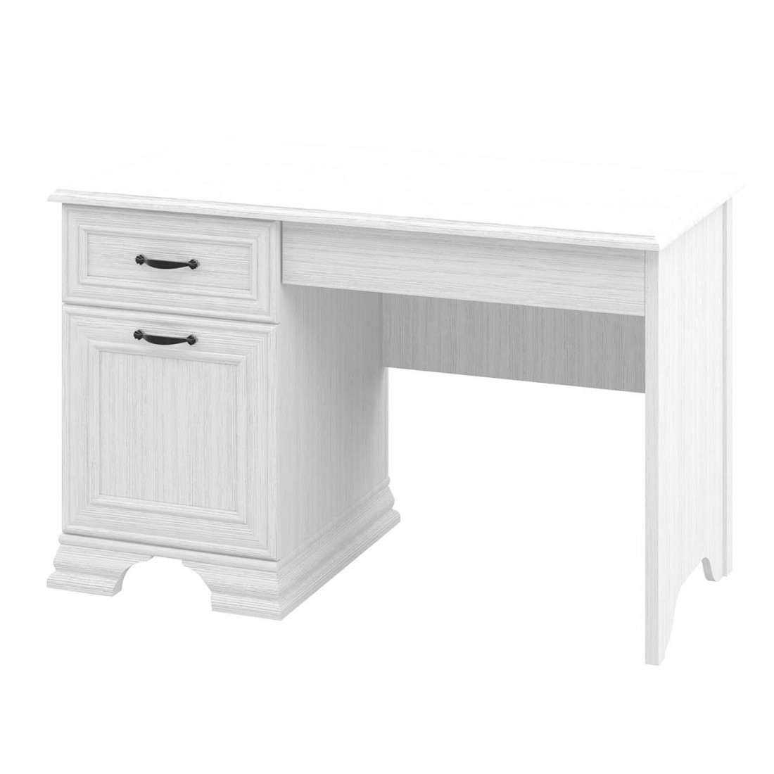 Стол Юнона МН-132-26 от фабрики Мебель-Неман - это письменный столик с тумбой в классическом стиле с отделкой структурной фактуры, обрамленный рамочным фасадом, где металлические ручки выгодно подчёркивают стиль и изящество, всегда актуален и востребован.