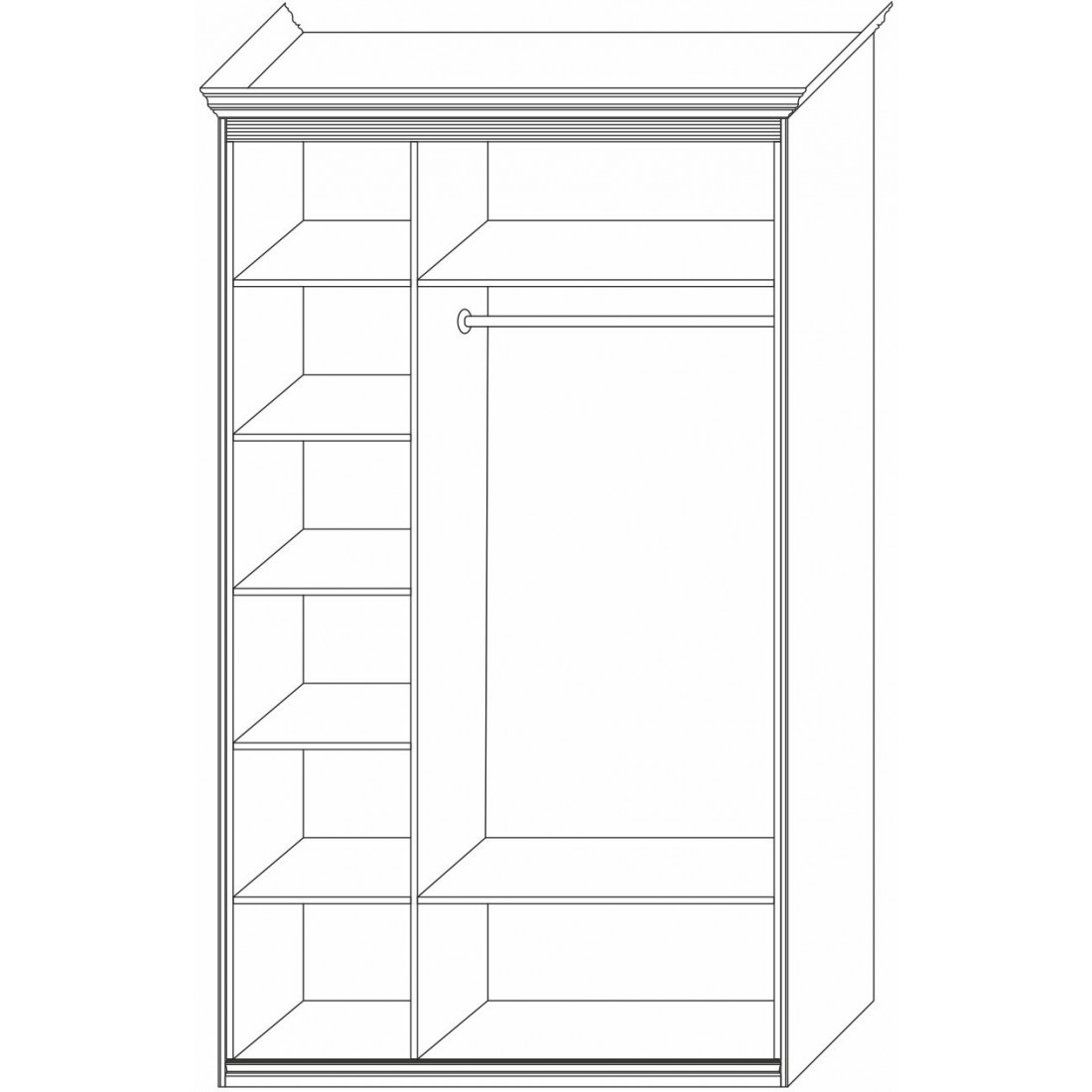 Шкаф 2-х дверный с глухой дверью и зеркальной Неаполь Ясень анкор светлый (патина "серебро")