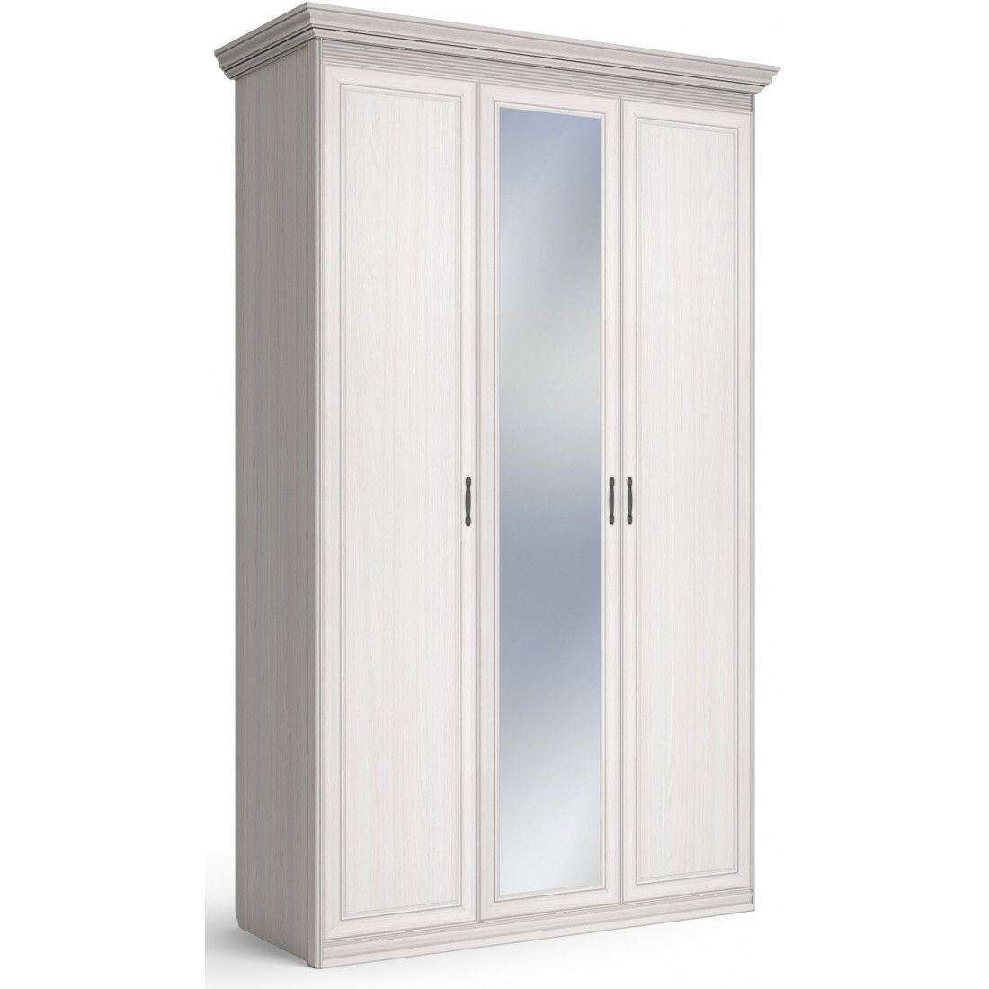 Шкаф 3-х дверный с глухой и зеркальной дверью Неаполь Ясень анкор светлый (патина "серебро")