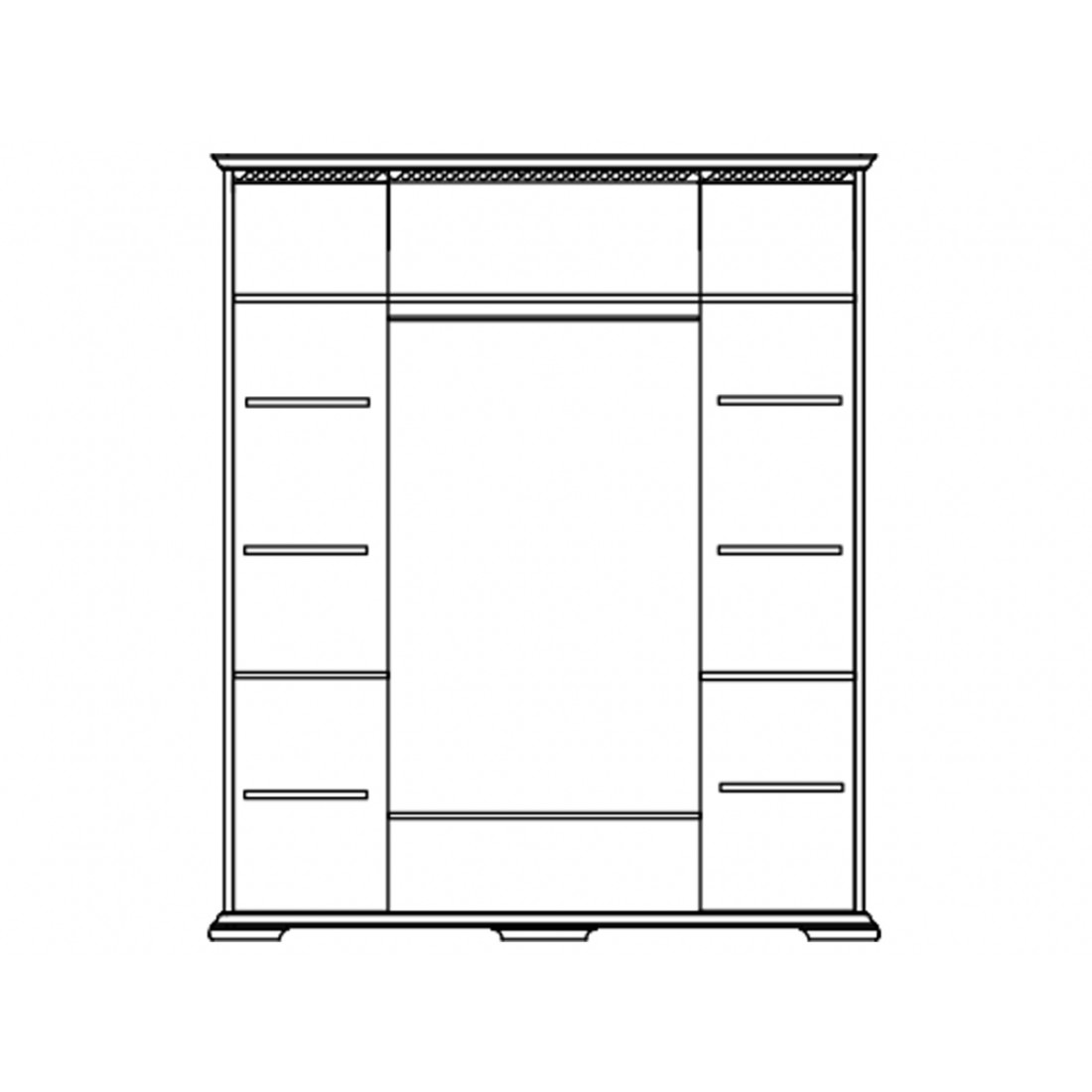 Четырехдверный шкаф Лика экономно использует площадь помещения, предоставляя достаточно пространства для хранения одежды, белья и других вещей. Выполнен в цвете "Медовый дуб с золотой патиной".