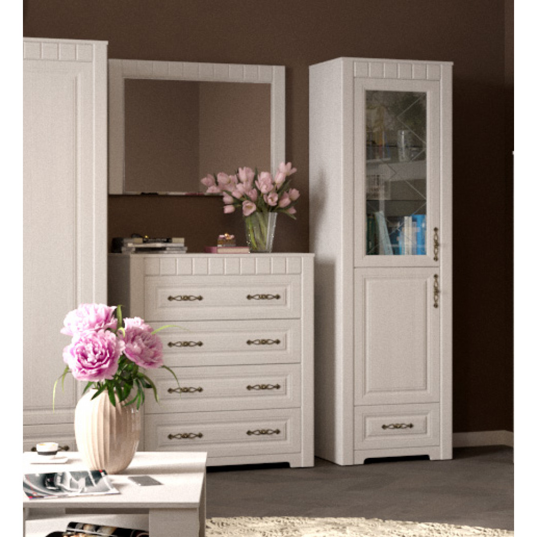 Шкаф-витрина Прованс однодверный - легкие ноты очарования сельской местности, простота линий и домашний уют - вот основные мотивы мебели этого стиля. Изящные ручки и аккуратные декоративные линии добавят шарма всей комнате.
