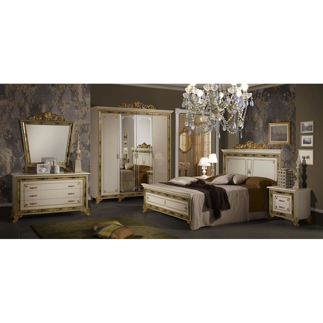 Спальня Катя (беж) от Российской фабрики «ДИА мебель» выполнена в бежевом цвете с  глянцевым покрытием. Фасады спальни украшены резной, золотой вставкой. Большие просторные зеркала на шкафу и комоде помогут Вам сделать комнату легче и светлее. Классический стиль коллекции "Катя" по достоинству оценят самые изысканные ценители роскоши. ОРТОПЕДИЧЕСКОЕ ОСНОВАНИЕ ПРИОБРЕТАЕТСЯ ОТДЕЛЬНО