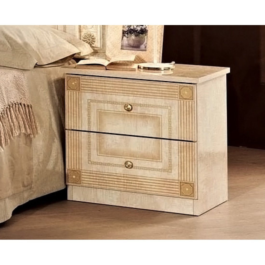 Спальня Рома (беж) композиция 2 от Российской фабрики «ДИА мебель» выполнена в строгом, классическом стиле. Бежевый цвет в сочетании с глянцевым покрытием придает элегантность. Такая спальня поможет Вам окунуться в атмосферу роскоши и комфорта. Большой шестистворчатый шкаф поможет с пользой заполнить место. Безшумные и плавно закрывающиеся дверцы шкафа и комода помогут с легкостью забыть о шуме по утрам. Вся коллекция "Рома" предназначена только для истинных ценителей элегантного классического стиля.