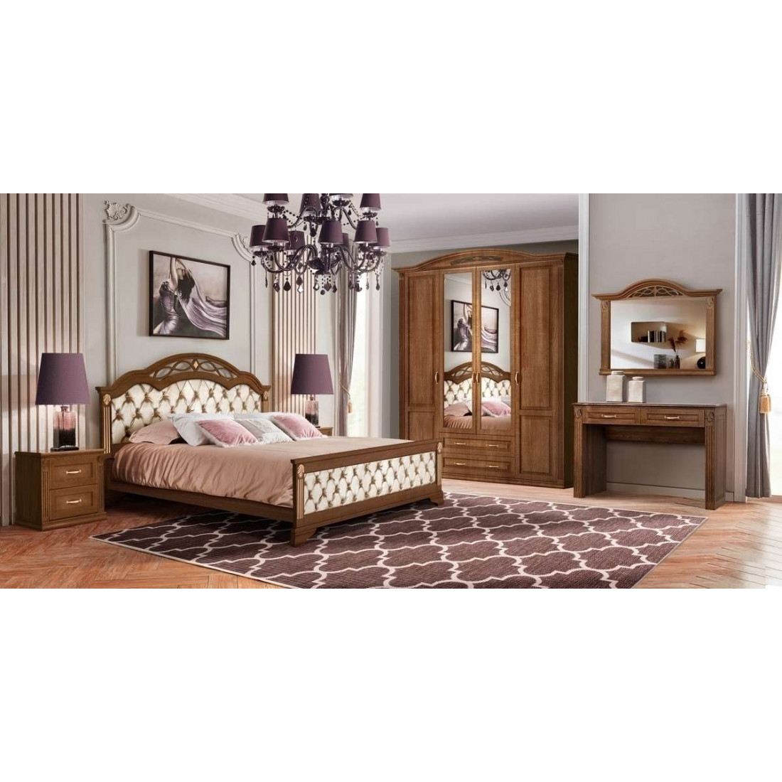 Комплект спальни в цвете орех включает в себя: