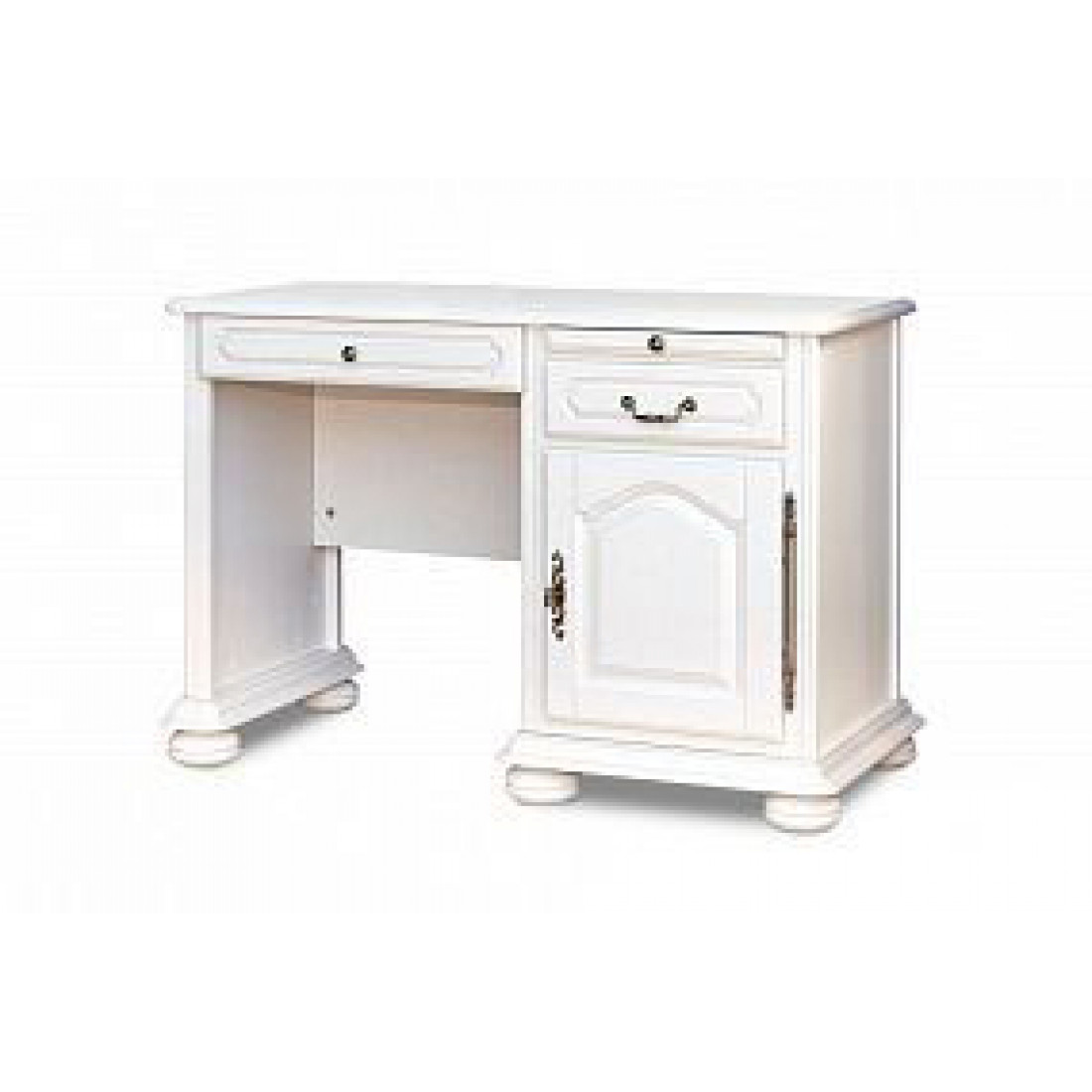 Письменный стол с одной правой тумбой из коллекции мебели для кабинета или гостиной "Давиль" это классика среди столов. Тумба оснащена выдвижным ящиком и дверцей, в центральной части стола также есть выдвижной ящик на направляющих. Выполнен с использованием массива дуба. Выполнен в цвете "Белая эмаль".