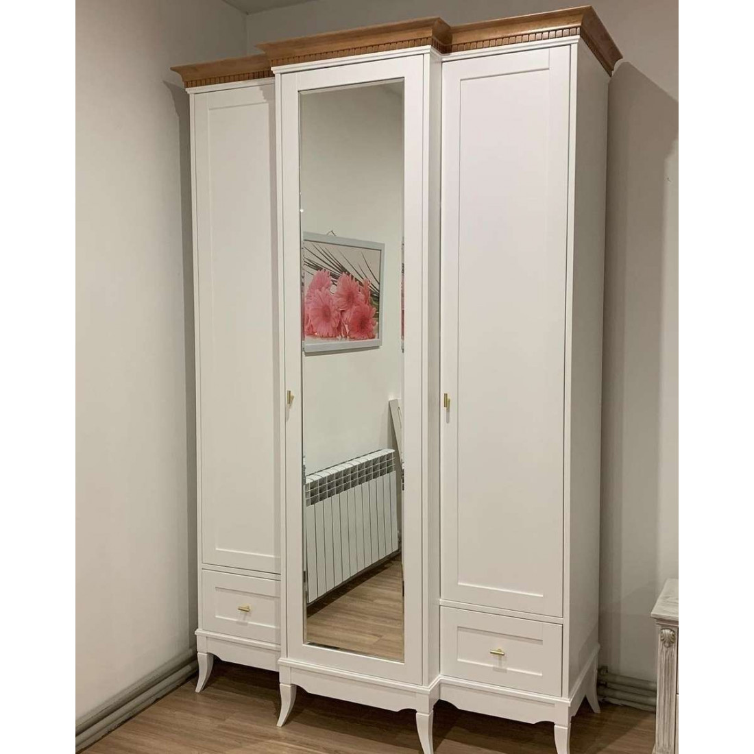 Трехстворчатый распашной шкаф для одежды Римини MUR-118-03 с зеркалом воплощает в себе классические тренды. Сочетание изящных оттенков удачно освежит Ваш интерьер и придаст знакомым формам новое дыхание. Неповторимые легкость и элегантность этой мебели создадут атмосферу тепла и уюта в Вашем доме.