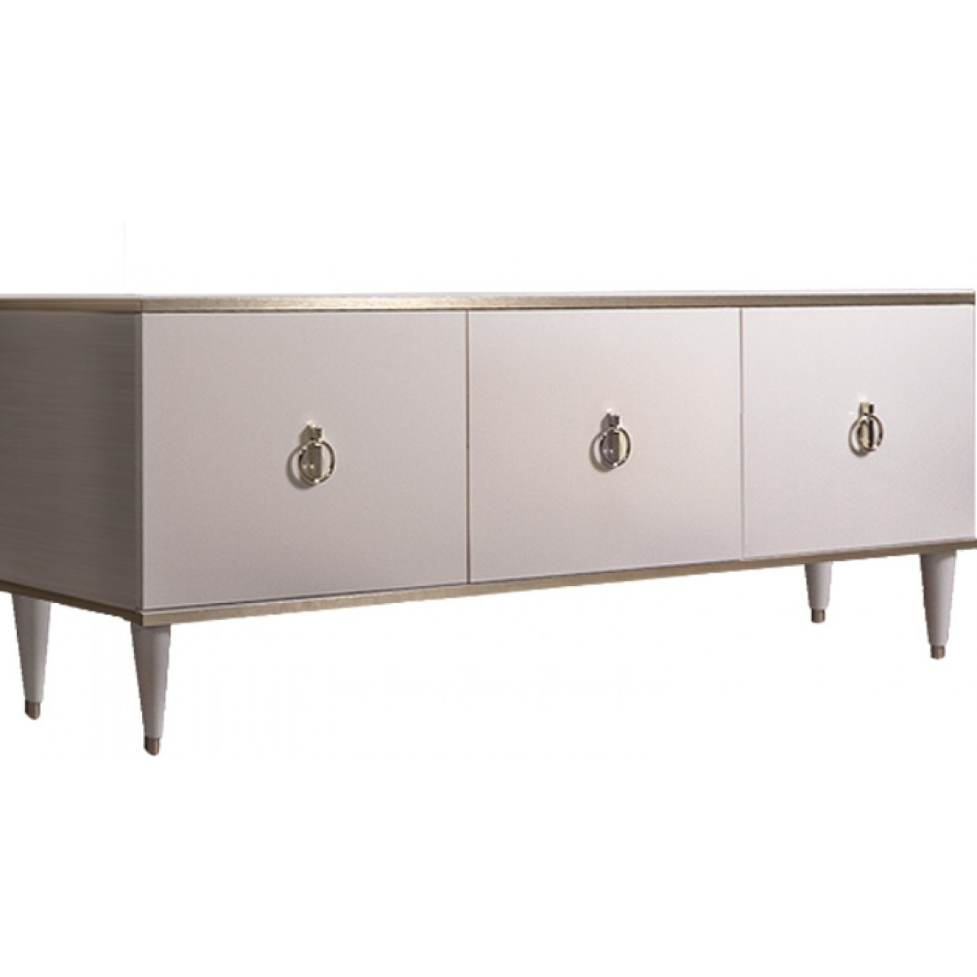 Оригинальным дизайнерским ходом стало решение «поставить» тумбу Rimini на высокие деревянные ножки с латунными или алюминиевыми наконечниками.