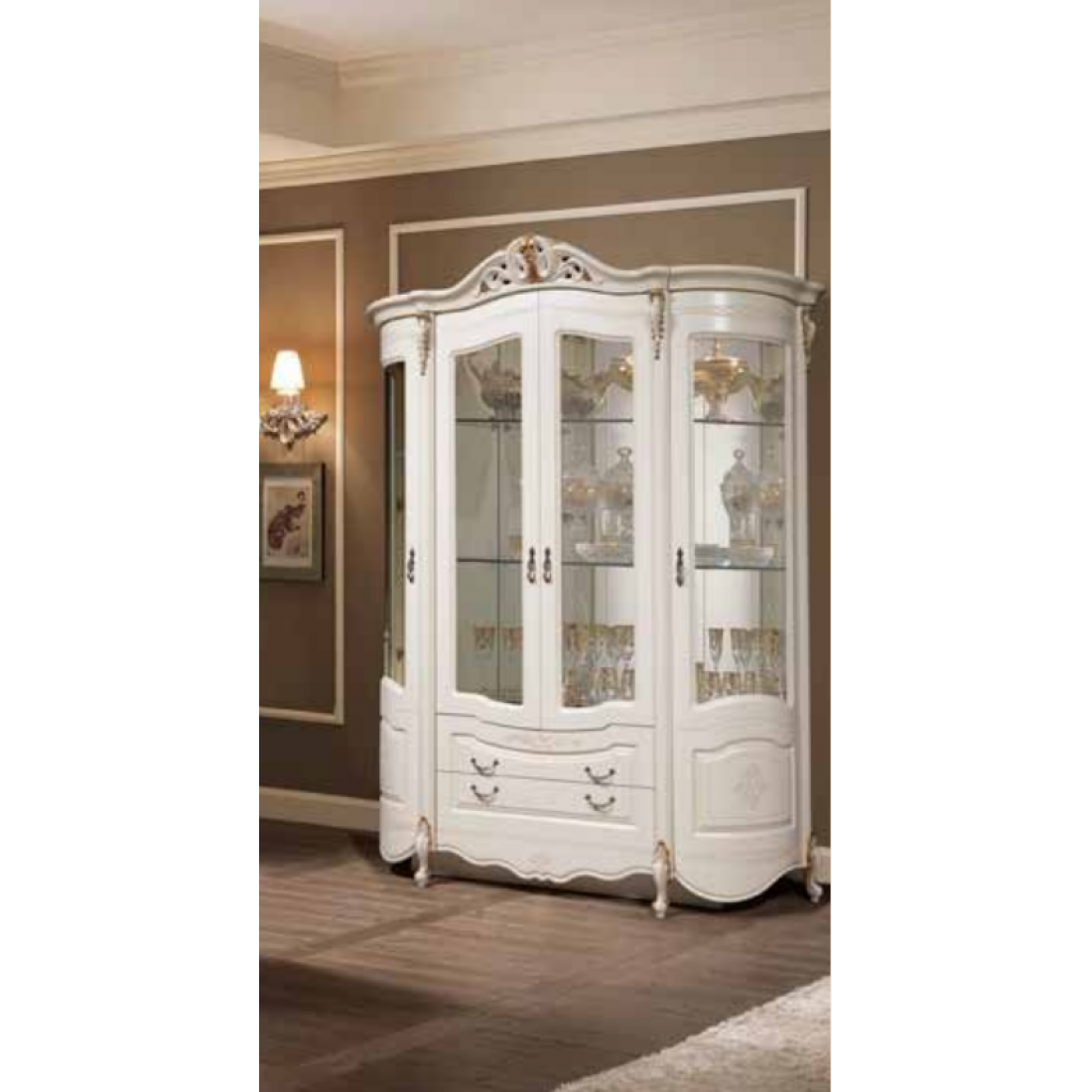 Витрина Аллегро 1/2 – данная модель сделает вашу гостиную неповторимой и нарядной. Ее стеклянные дверцы и зеркальный корпус придадут комнате светлую атмосферу, а стеклянные полки для посуды сделают эту витрину легкой и воздушной даже не смотря на ее мощный с первого взгляда фасад. Такая витрина подчеркнет классический стиль и послужит показателем богатства и престижа хозяев дома.