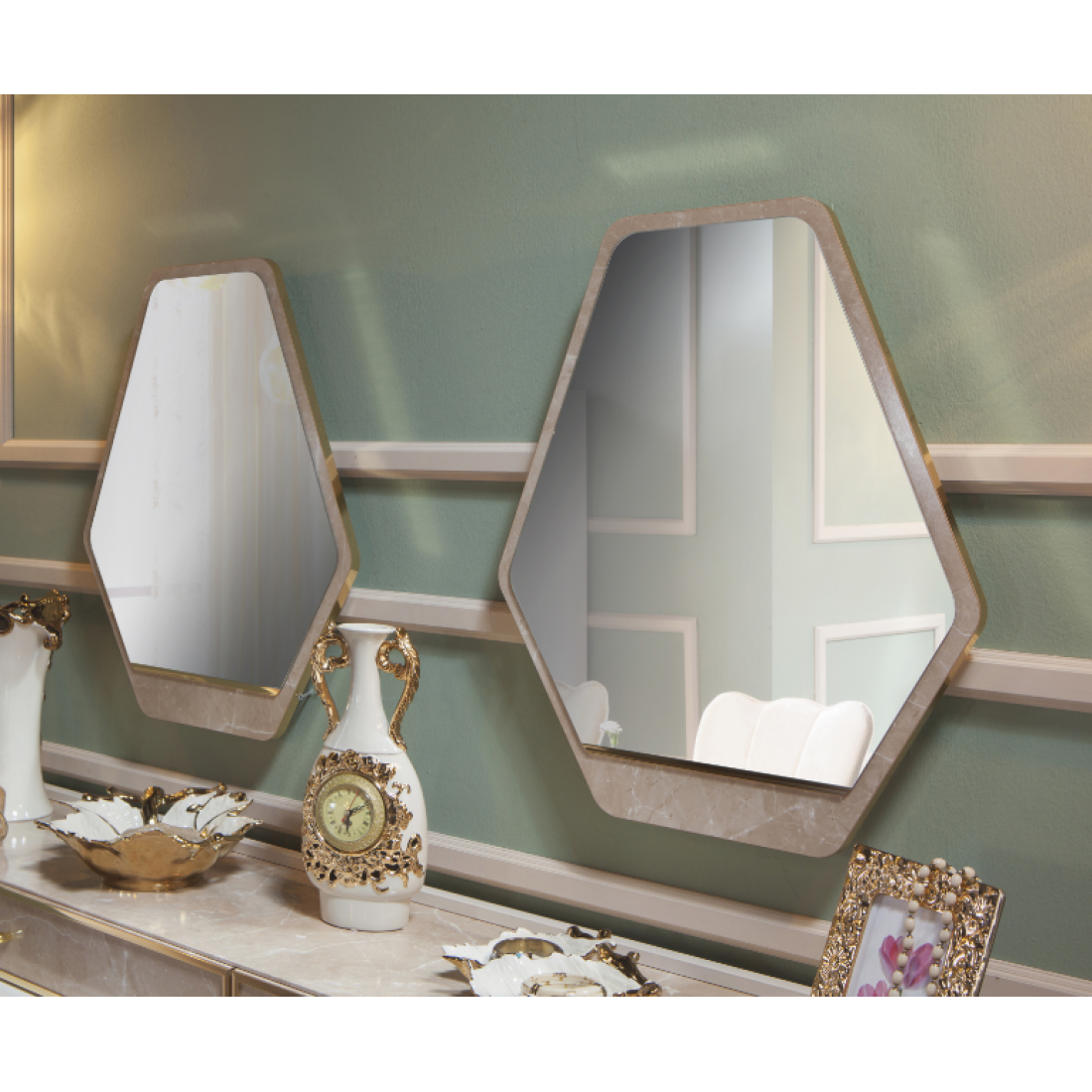 Комплект зеркал Monreal дополняет спальню или гостиную этой серии. Можно использовать как самостоятельный элемент декора. Размер каждого зеркала -60х70 см. Серия снята с производства.
